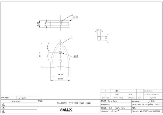 VAL23102 Strap End Stainless Steel Polished
