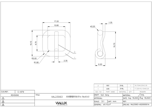 VAL23060 16mm Pin Buckle Stainless Steel Polished