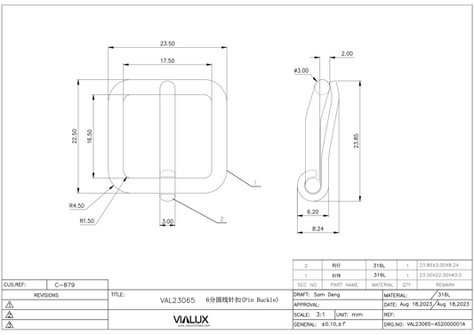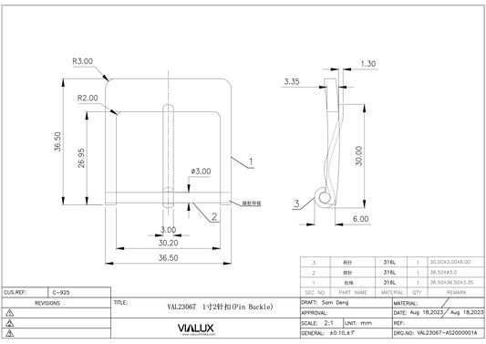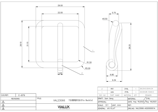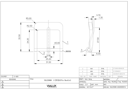 VAL23067 30mm Pin Buckle Stainless Steel Polished