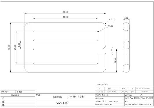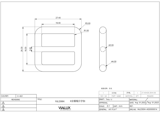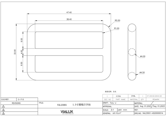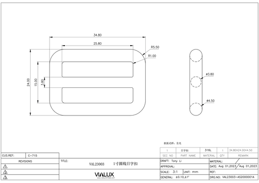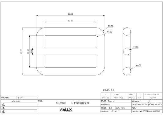VAL23001 38mm Double Loop Slider Stainless Steel Polished