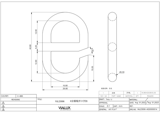 VAL23003 25mm Double Loop Slider Stainless Steel Polished
