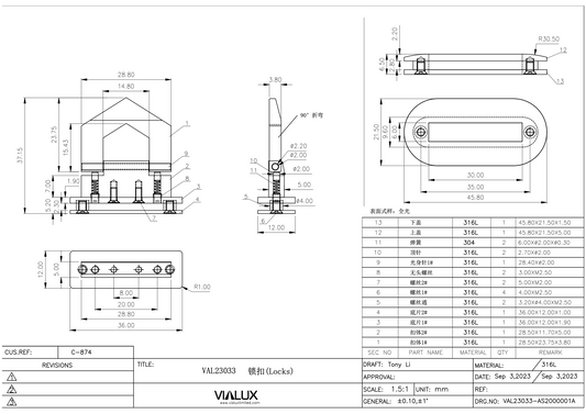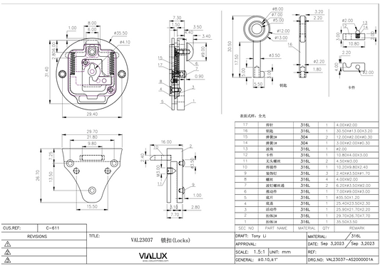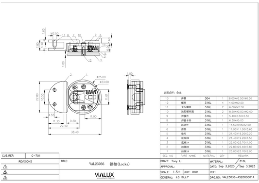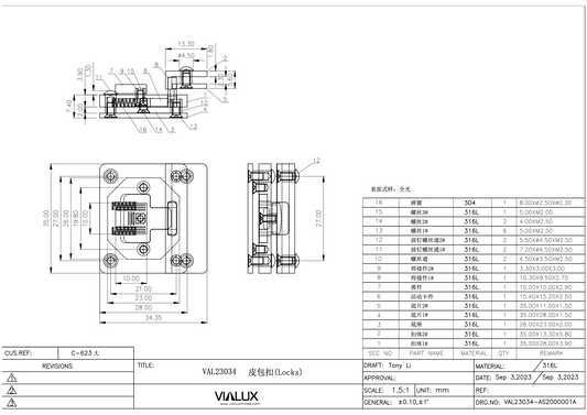 VAL23033 Flip Lock Stainless Steel Polished
