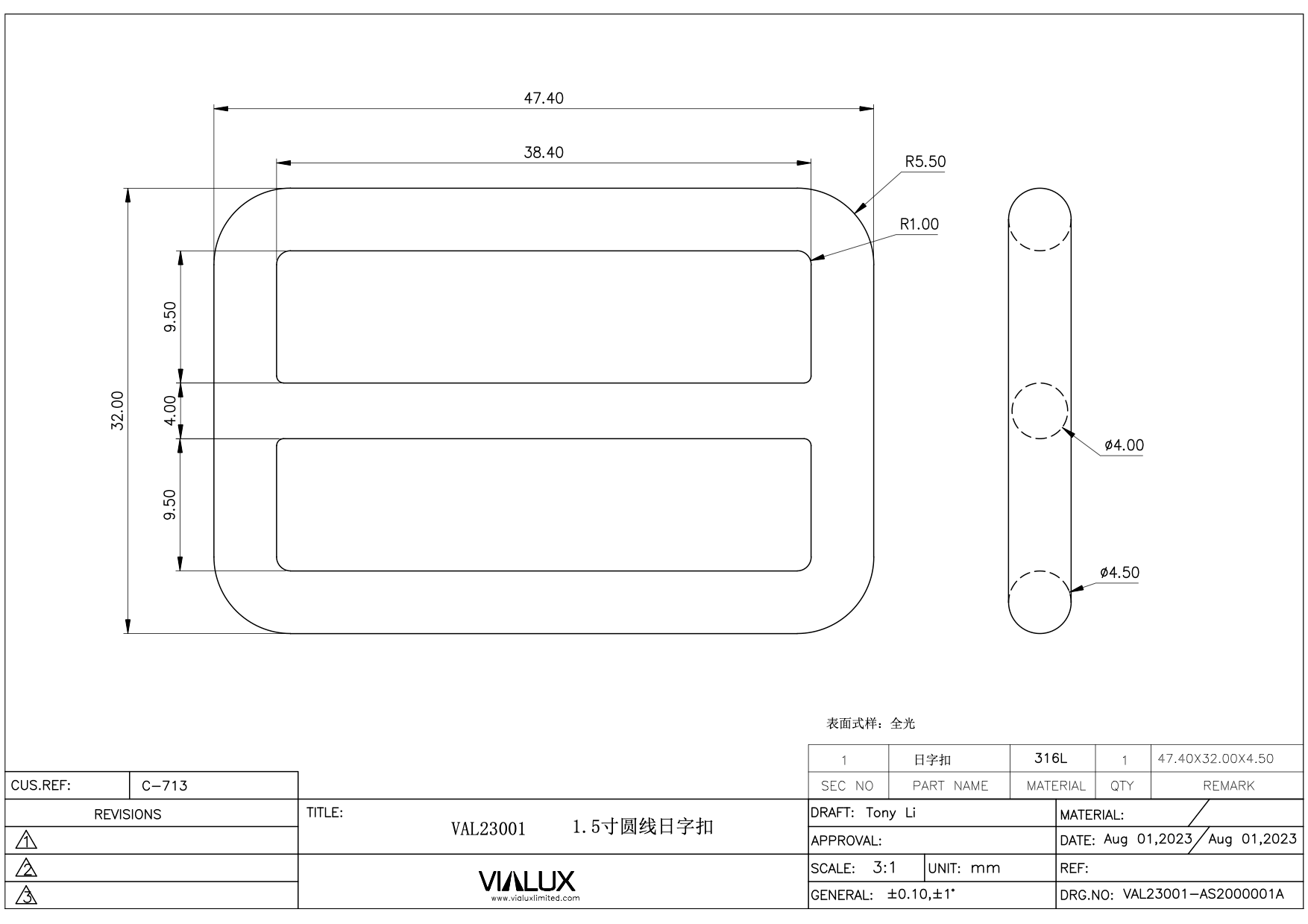 VAL23001 38mm Double Loop Slider Stainless Steel Polished