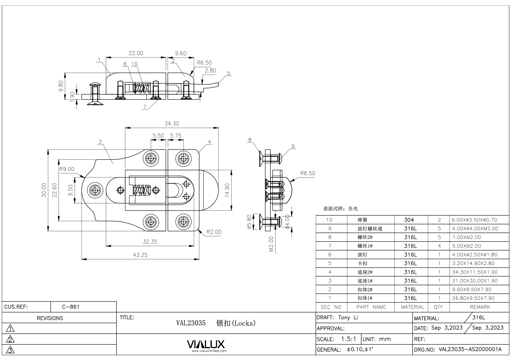 VAL23035 Briefcase Lock Stainless Steel Polished