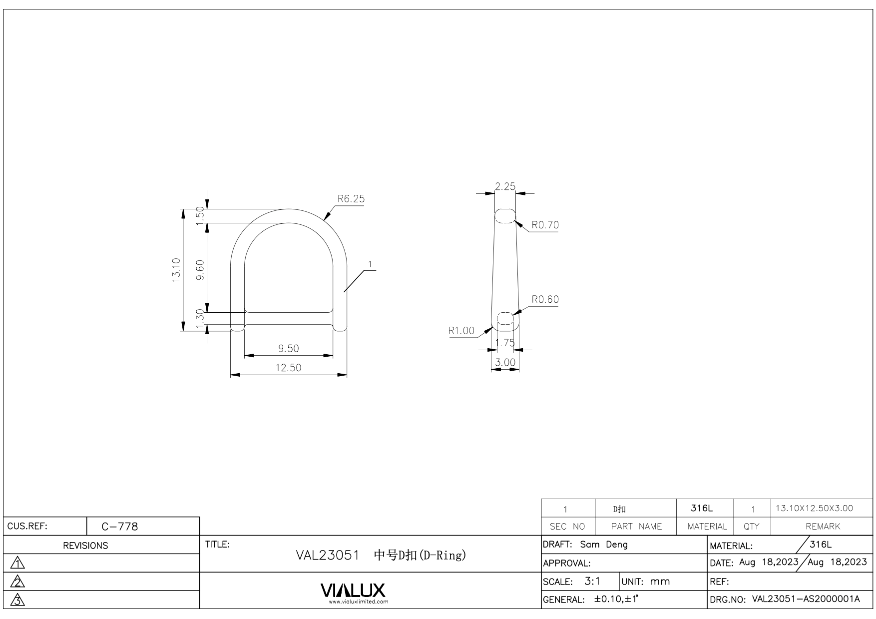 VAL23051 10mm D Ring Stainless Steel Polished