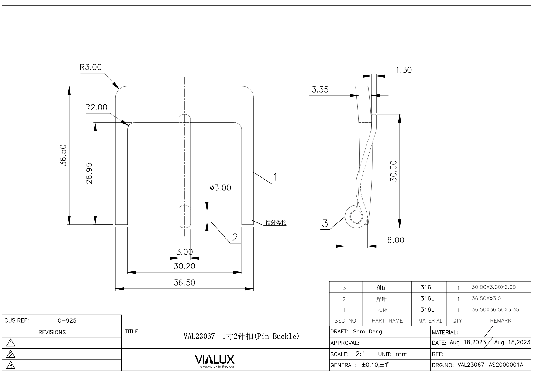 VAL23067 30mm Pin Buckle Stainless Steel Polished