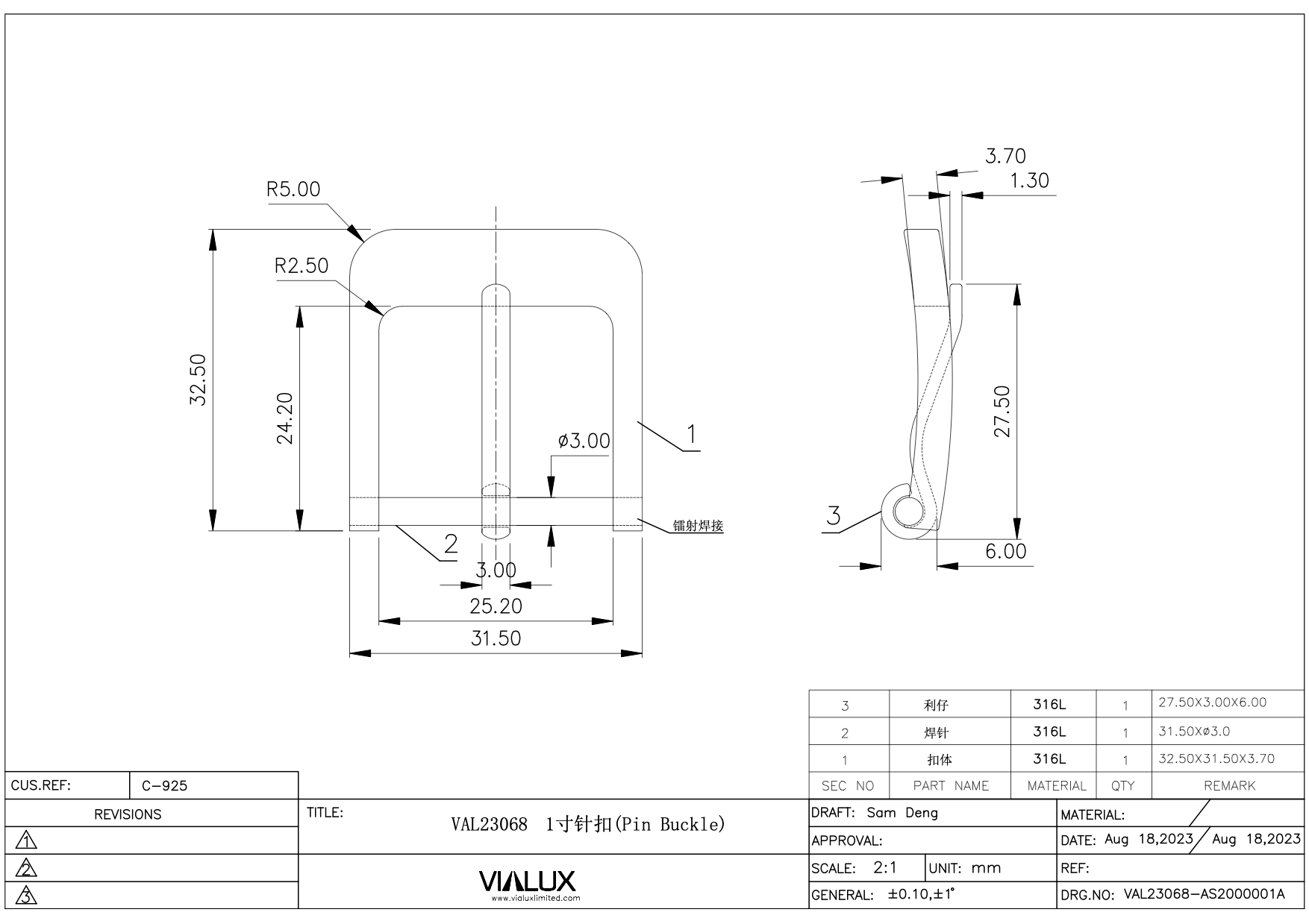 VAL23068 25mm Pin Buckle Stainless Steel Polished