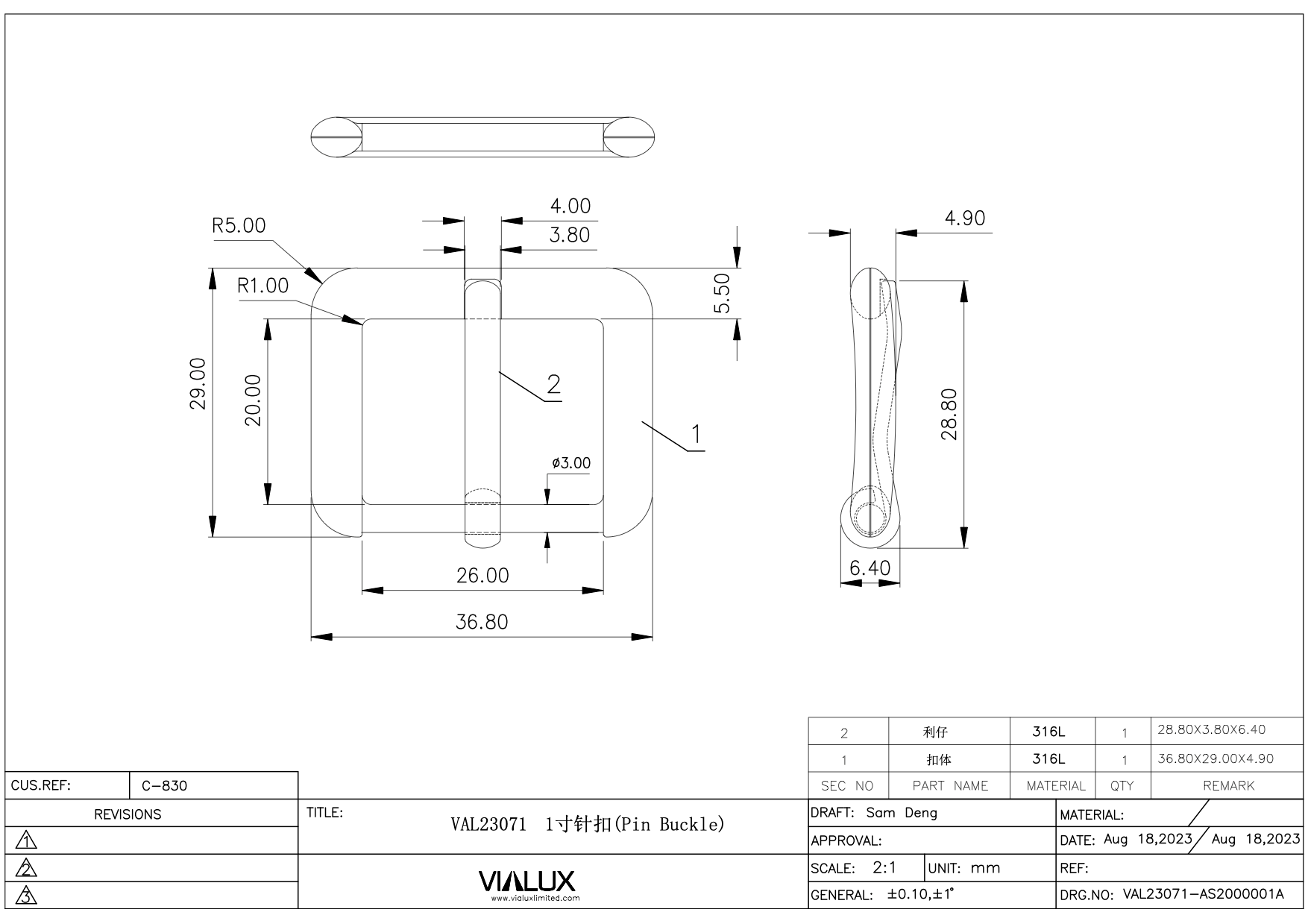 VAL23071 25mm Pin Buckle Stainless Steel Polished