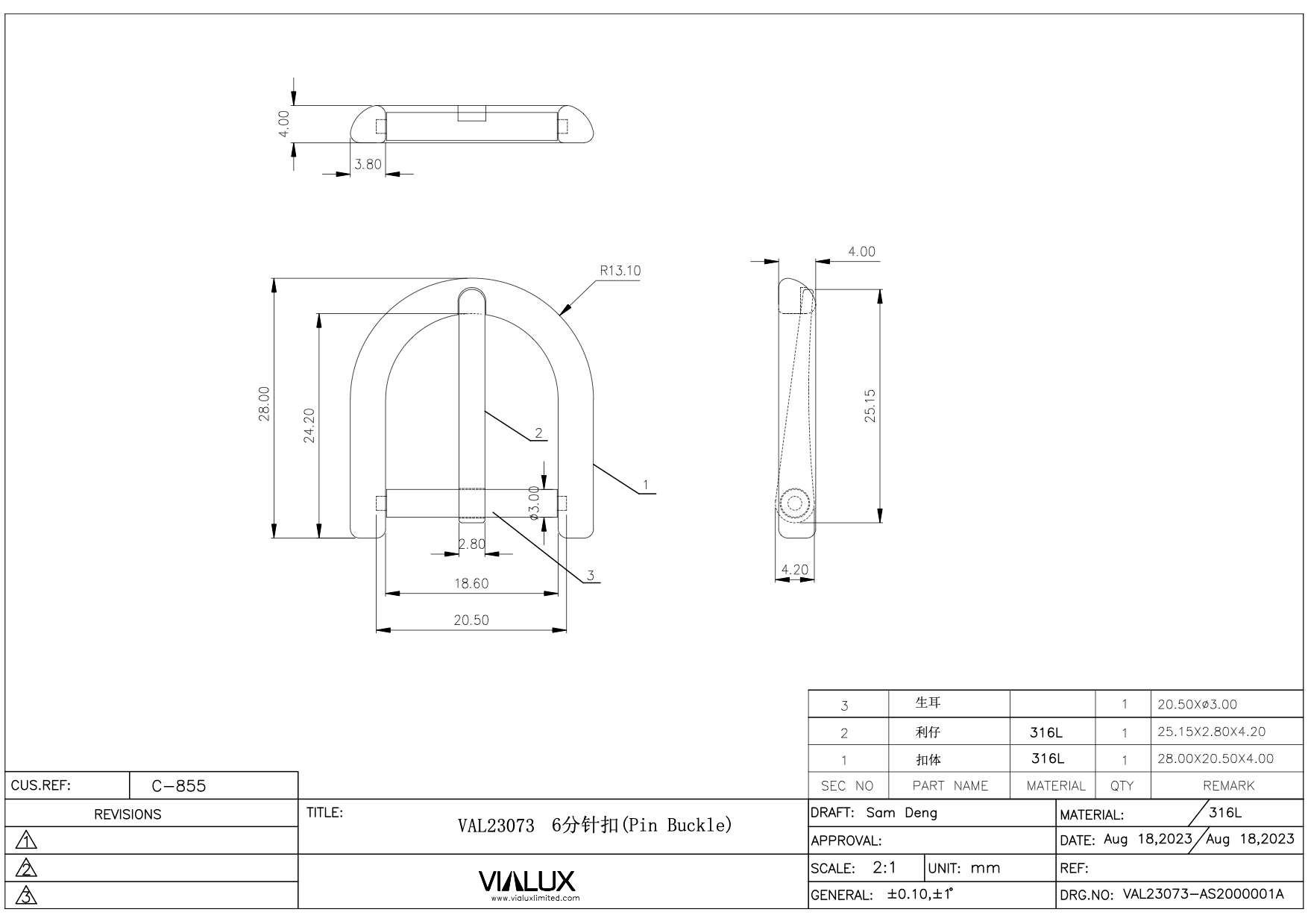 VAL23073 19mm Pin Buckle Stainless Steel Polished