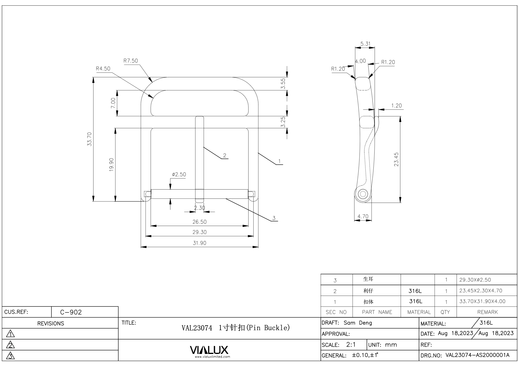 VAL23074 25mm Pin Buckle Stainless Steel Polished