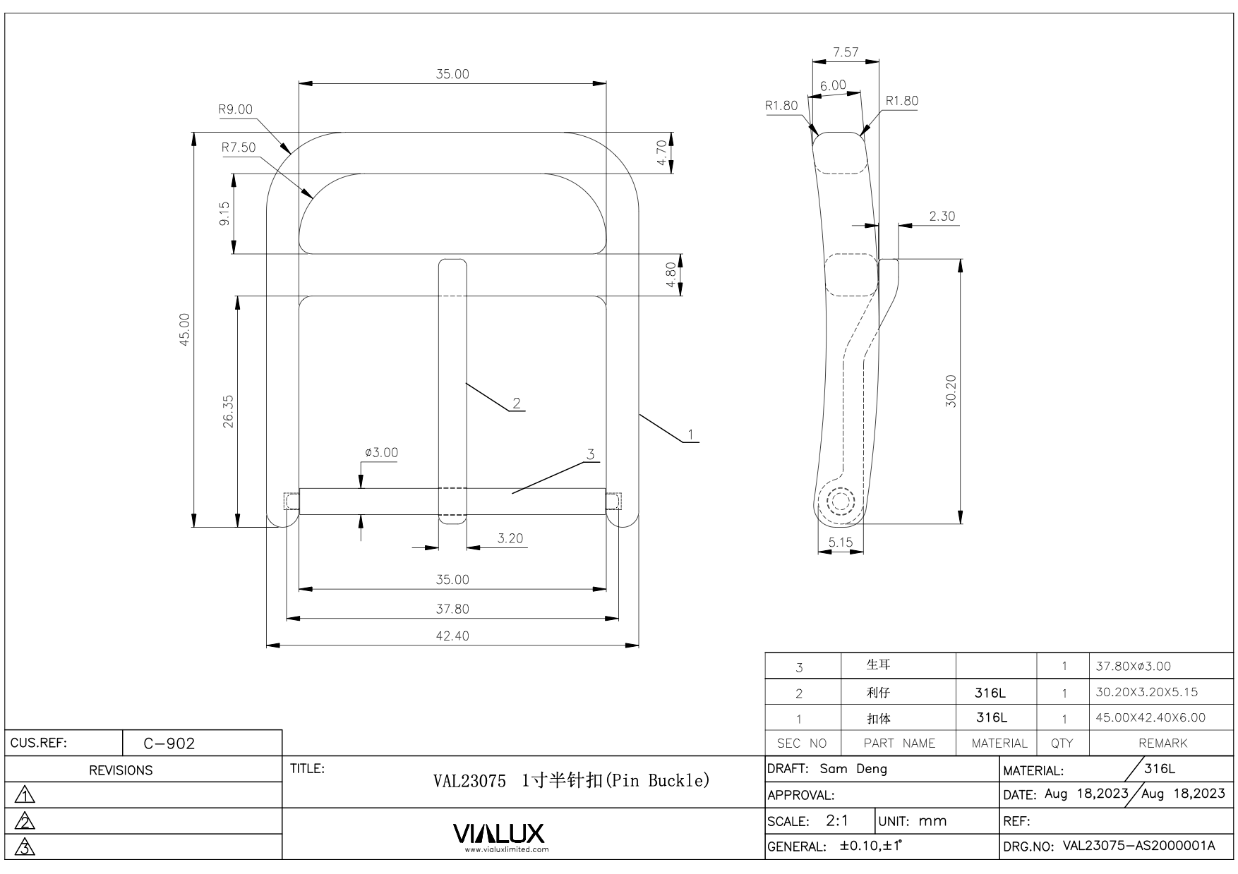 VAL23075 35mm Pin Buckle Stainless Steel Polished