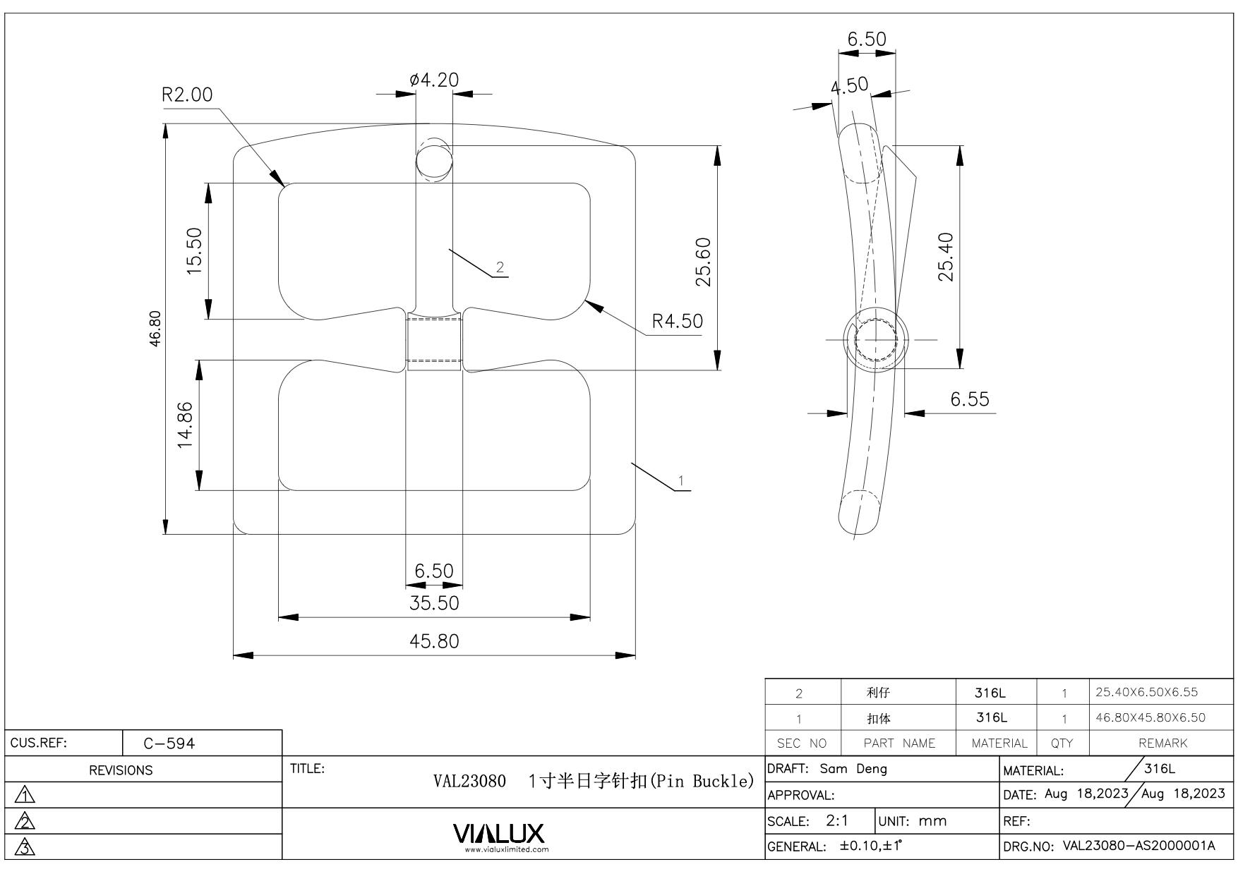 VAL23080 35mm Pin Buckle Stainless Steel Polished