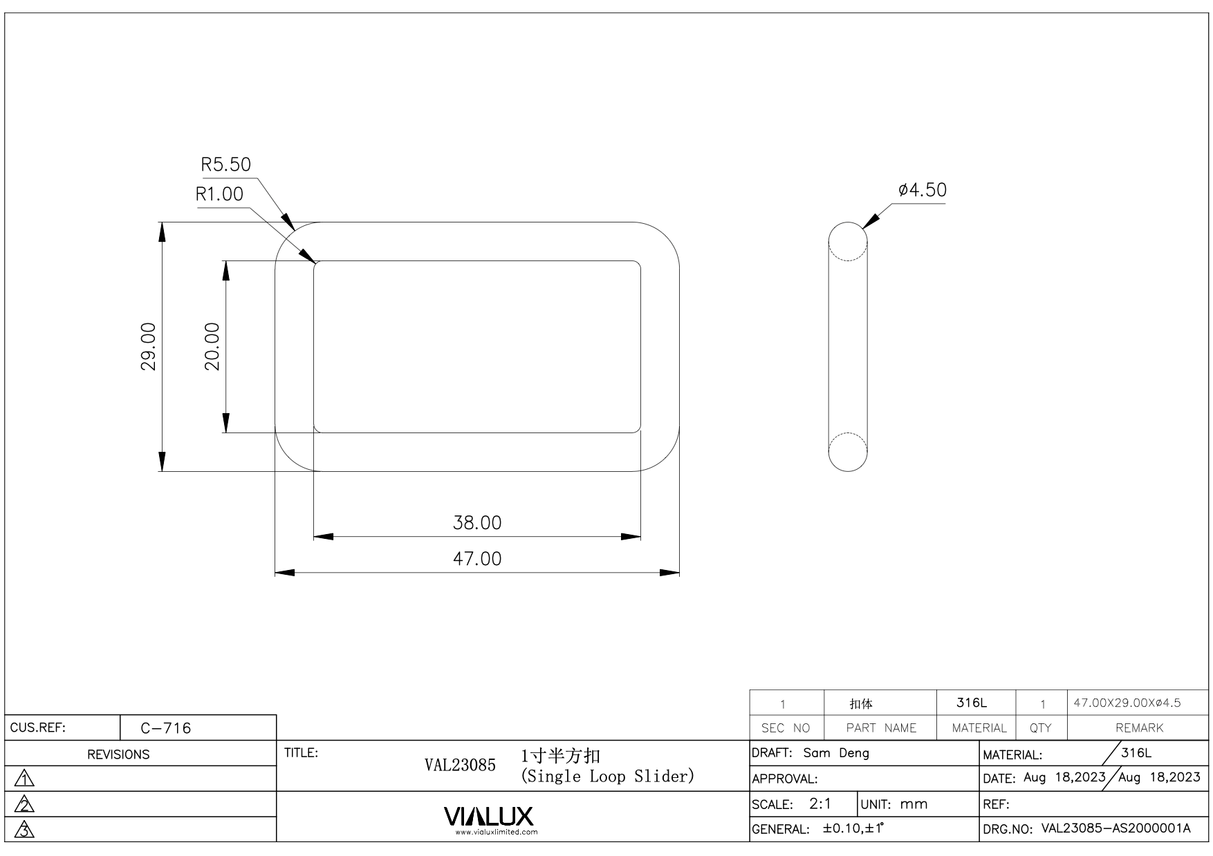 VAL23085 38mm Single Loop Slider Stainless Steel Polished