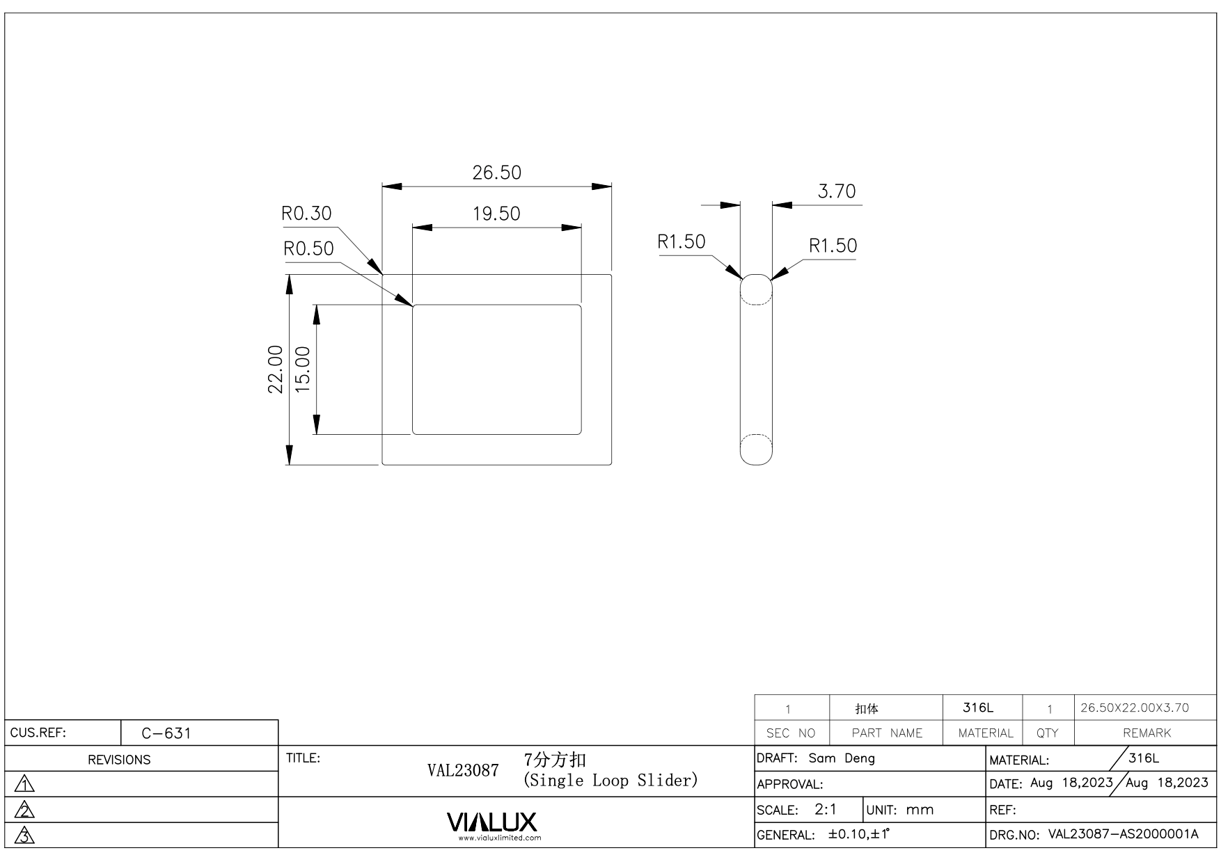 VAL23087 19mm Single Loop Slider Stainless Steel Polished