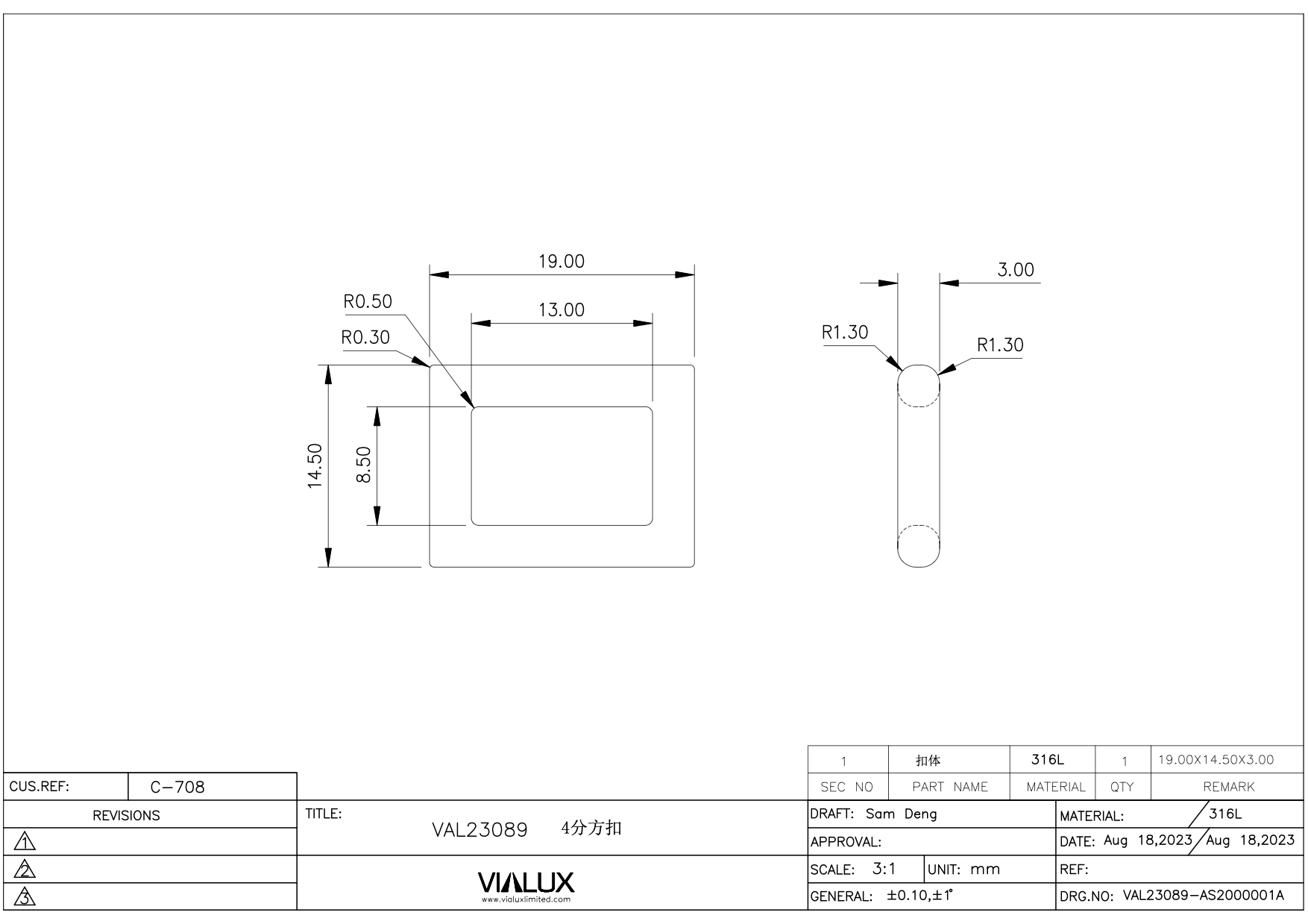 VAL23089 13mm Single Loop Slider Stainless Steel Polished