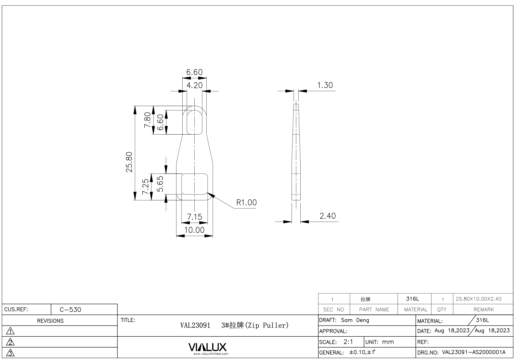 VAL23091 #3 Zip Puller Stainless Steel Polished