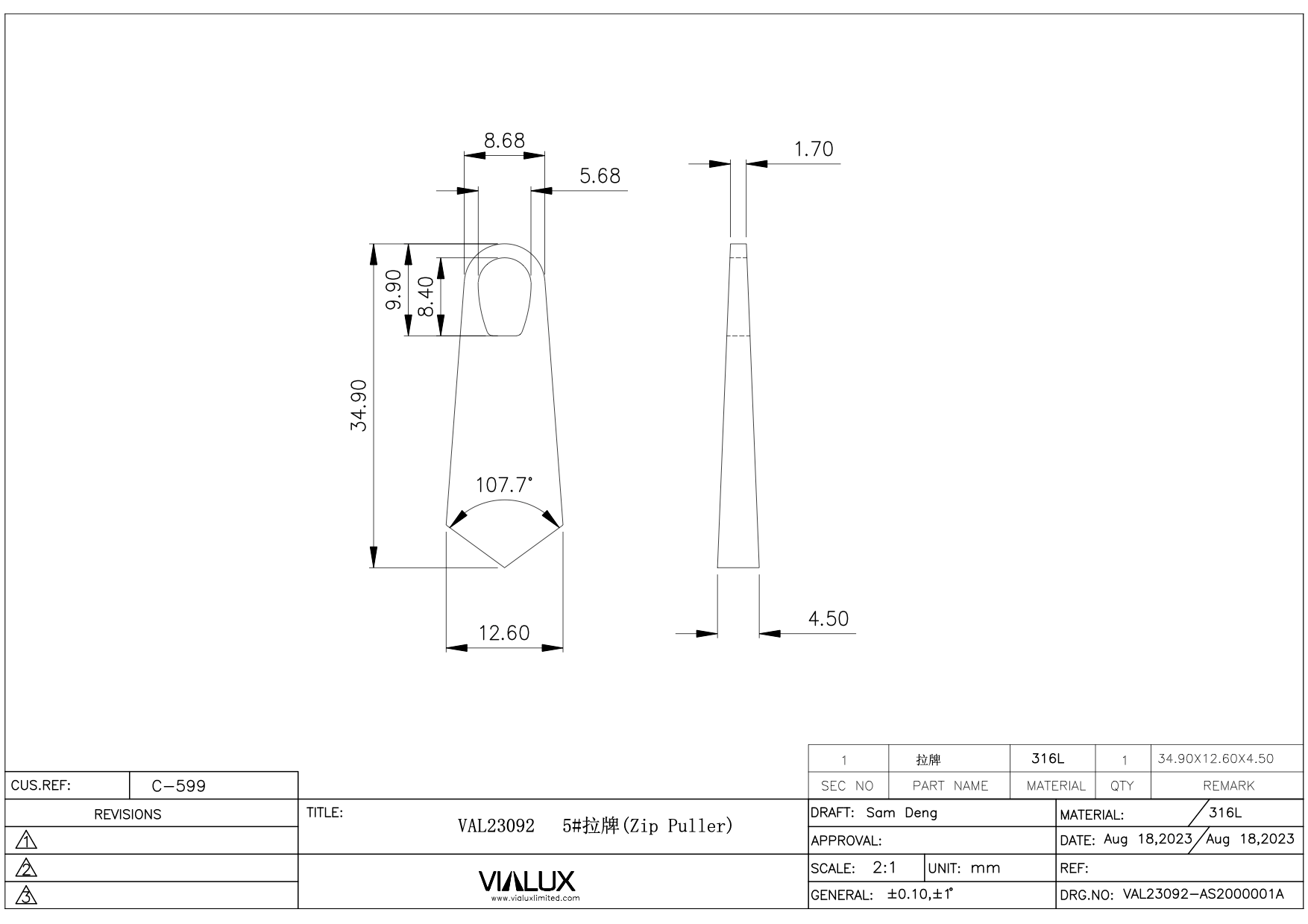 VAL23092 5# Zip Puller Stainless Steel Polished