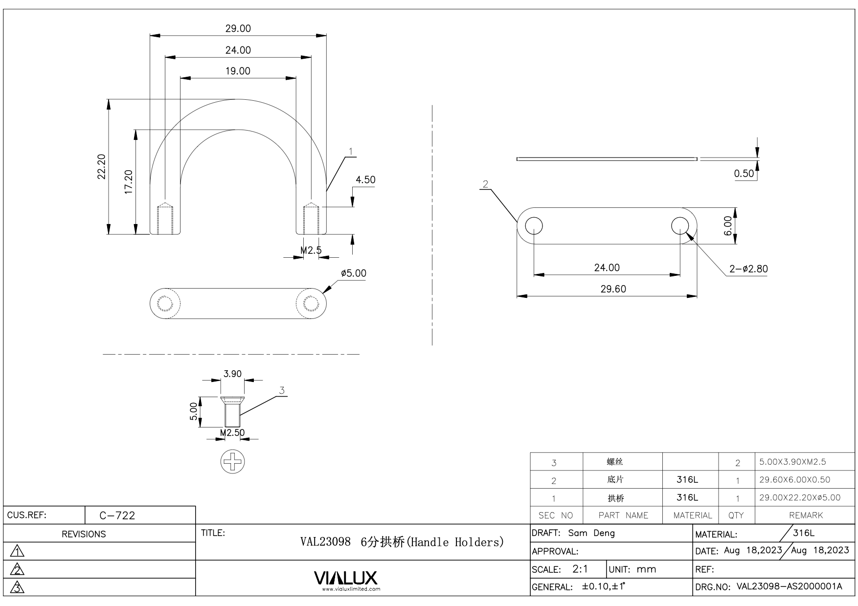 VAL23098 19mm Handle Holder Stainless Steel Polished