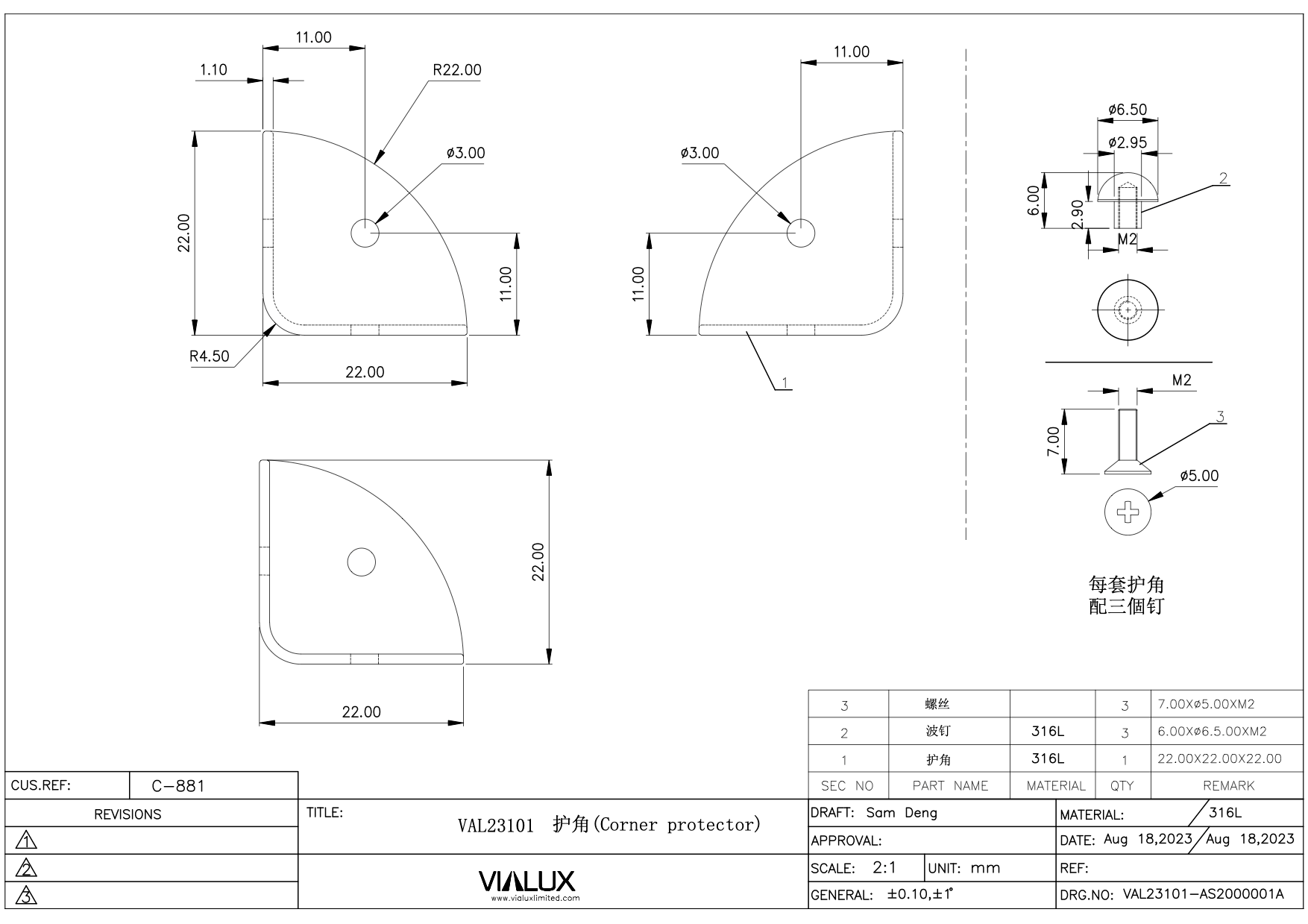 VAL23101 Corners Stainless Steel Polished