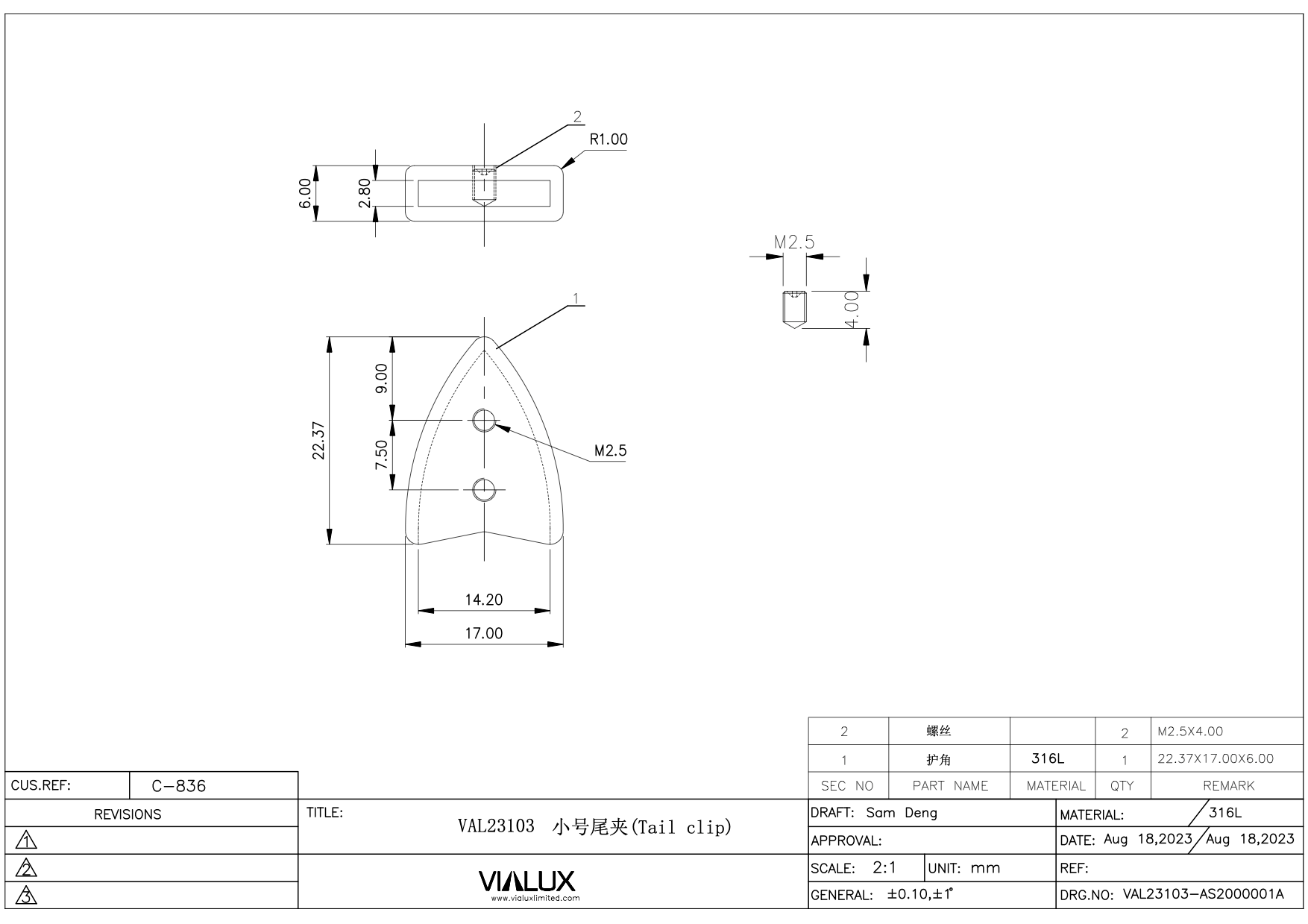 VAL23103 Strap End Stainless Steel Polished