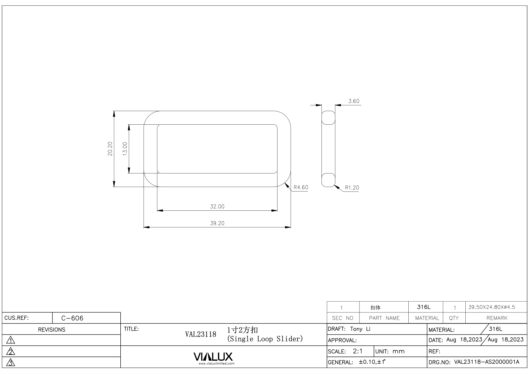 VAL23118 Single Loop Slider Stainless Steel Polished